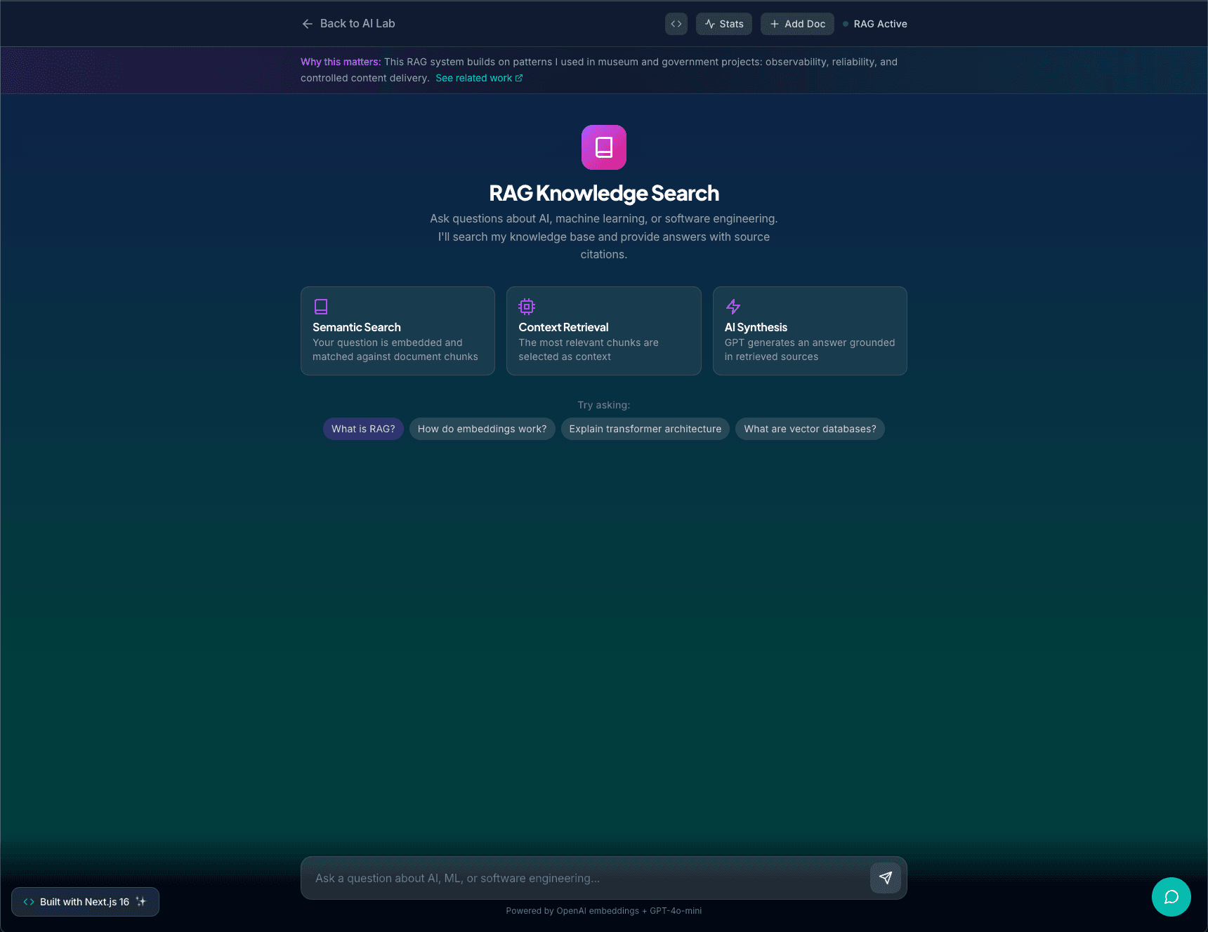 - Project Lead means I owned the architecture and a large part of the implementation.